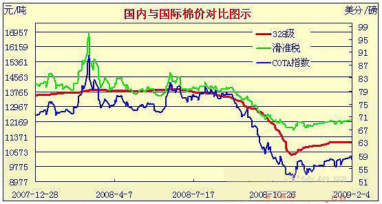 08年12月31日-09年2月4日國內(nèi)外棉價對比圖表