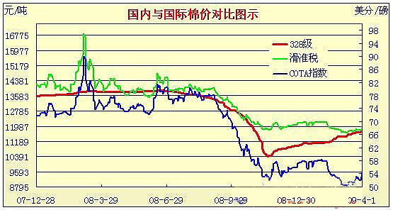 09年3月2日-09年4月2日國內(nèi)外棉價(jià)對比圖表