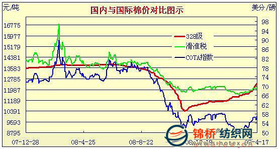 09年3月2日-09年4月17日國內(nèi)外棉價(jià)對比圖表