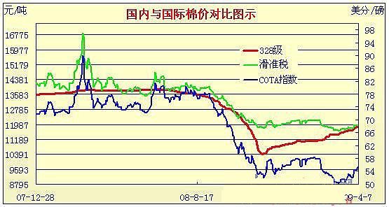 09年3月2日-09年4月7日國內(nèi)外棉價對比圖表