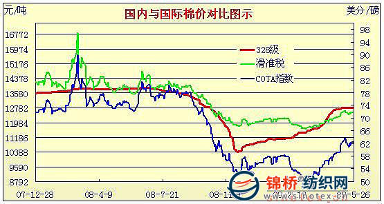 09年3月2日-09年5月26日國(guó)內(nèi)外棉價(jià)對(duì)比圖表