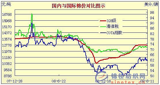 09年3月2日-09年6月11日國內(nèi)外棉價對比圖表