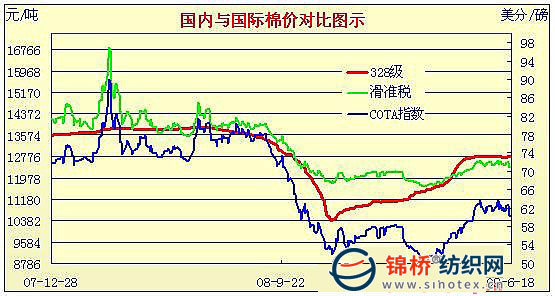 09年3月2日-09年6月18日國內(nèi)外棉價(jià)對比圖表