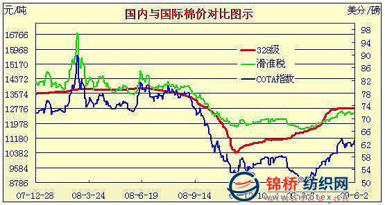 09年3月2日-09年6月3日國內(nèi)外棉價(jià)對(duì)比圖表