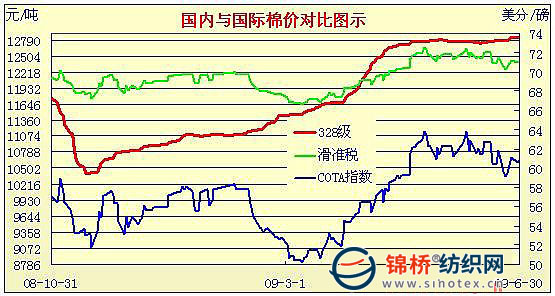 09年3月2日-09年6月30日國內(nèi)外棉價對比圖表