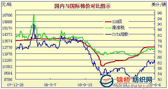 09年3月2日-09年6月4日國內(nèi)外棉價(jià)對比圖表