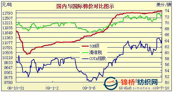 09年6月1日-09年7月10日國內(nèi)外棉價對比圖表