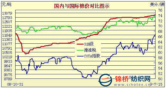 錦橋紡織網(wǎng)—資訊頻道> 棉花信息> cotlook>正文 09年6月1日-09年7月15日國內(nèi)外棉價對比圖表