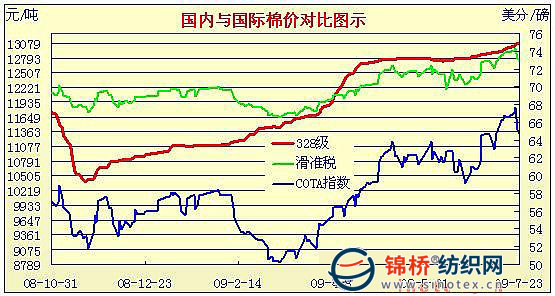 錦橋紡織網(wǎng)—資訊頻道> 棉花信息> cotlook>正文 國內(nèi)外棉價對比圖表(6月1日-7月23日)