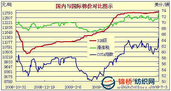 09年3月2日-09年7月3日國內(nèi)外棉價對比圖表