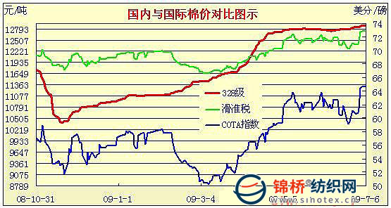 09年3月2日-09年7月3日國(guó)內(nèi)外棉價(jià)對(duì)比圖表