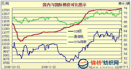 09年3月2日-09年7月6日國內外棉價對比圖表