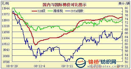 錦橋紡織網(wǎng)—資訊頻道> 棉花信息> cotlook>正文 國內(nèi)外棉價對比圖表(8月31日-9月21日)