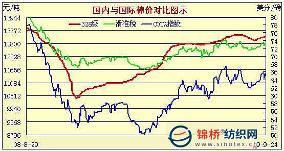 錦橋紡織網(wǎng)—資訊頻道> 棉花信息> cotlook>正文 國內(nèi)外棉價對比圖表(8月31日-9月24日)
