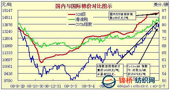 錦橋紡織網(wǎng)—資訊頻道> 棉花信息> cotlook>正文 國內(nèi)外棉價對比圖表(11.30-1.7)