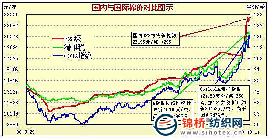 錦橋紡織網(wǎng)—資訊頻道> 棉花信息> cotlook>正文 國內(nèi)外棉價對比圖表(9.10-10.11)