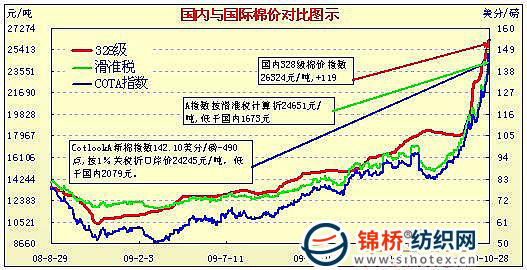 錦橋紡織網(wǎng)—資訊頻道> 棉花信息> cotlook>正文 國內(nèi)外棉價對比圖表(9.30-10.28)