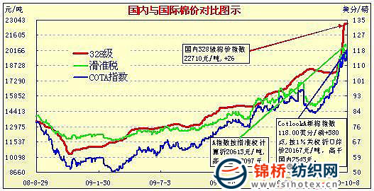 錦橋紡織網(wǎng)—資訊頻道> 棉花信息> cotlook>正文 國內(nèi)外棉價對比圖表(8.31-10.8)