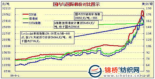國(guó)內(nèi)外棉價(jià)對(duì)比圖表(10.15-11.5)