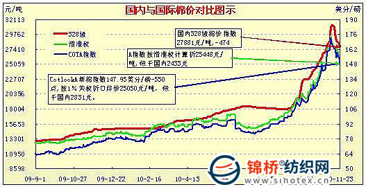 國內(nèi)外棉價(jià)對比圖表(11.1-11.22)