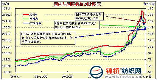 國內(nèi)外棉價(jià)對比圖表(11.1-11.26)