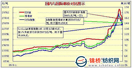 國內(nèi)外棉價對比圖表(11.1-11.26)