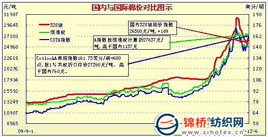 錦橋紡織網(wǎng)—資訊頻道> 棉花信息> cotlook>正文 國內(nèi)外棉價對比圖表(11.15-12.6)
