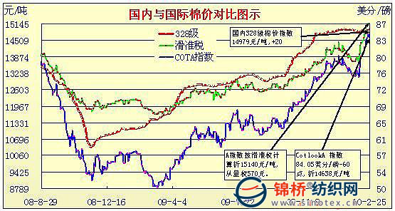 錦橋紡織網(wǎng)—資訊頻道> 棉花信息> cotlook>正文 國內(nèi)外棉價對比圖表(1.29-2.25)