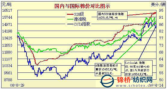 錦橋紡織網(wǎng)—資訊頻道> 棉花信息> cotlook>正文 國內(nèi)外棉價對比圖表(2.26-4.14)
