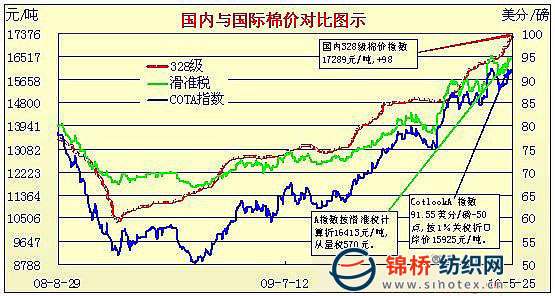 錦橋紡織網(wǎng)—資訊頻道> 棉花信息> cotlook>正文 國內(nèi)外棉價對比圖表(4.30-5.25)