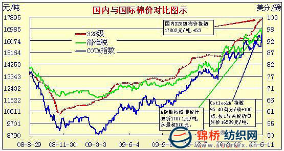 錦橋紡織網(wǎng)—資訊頻道> 棉花信息> cotlook>正文 國內(nèi)外棉價對比圖表(5.20-6.11)