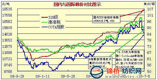 國內(nèi)外棉價(jià)對(duì)比圖表(6.25-7.5)