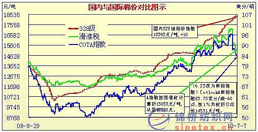 國內(nèi)外棉價對比圖表(6.15-7.7)