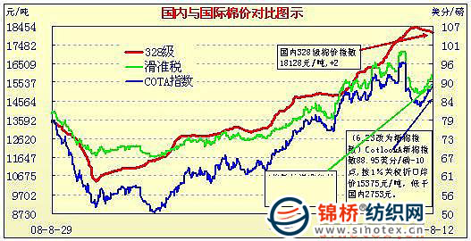 國(guó)內(nèi)外棉價(jià)對(duì)比圖表(7.01-8.09)