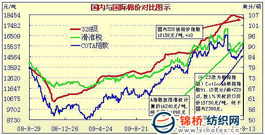錦橋紡織網(wǎng)—資訊頻道> 棉花信息> cotlook>正文 國內(nèi)外棉價對比圖表(7.30-8.13)
