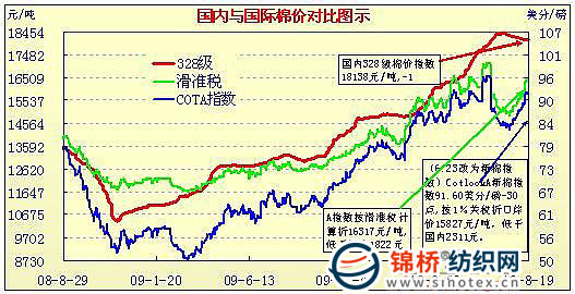 國(guó)內(nèi)外棉價(jià)對(duì)比圖表(7.01-8.09)