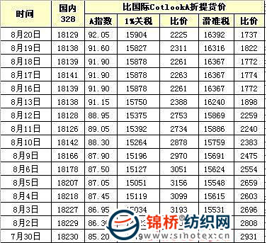 國內(nèi)外棉價對比圖表(7.30-8.20)