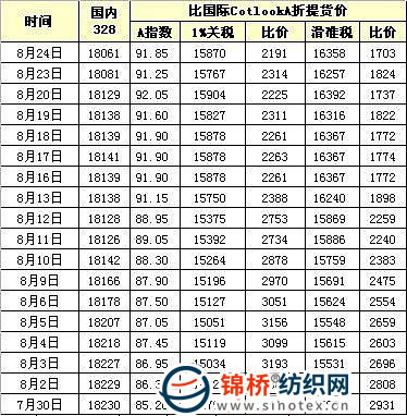 國內(nèi)外棉價對比圖表(7.30-8.24)