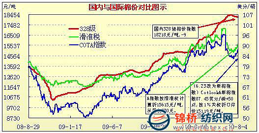 國(guó)內(nèi)外棉價(jià)對(duì)比圖表(6月1日-8月1