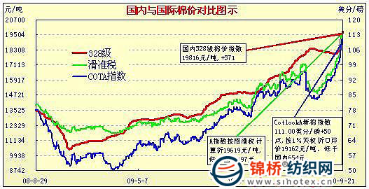 國內外棉價對比圖表——內外棉價倒掛(7.30-9.20)