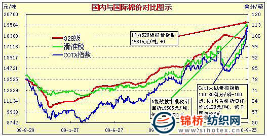 錦橋紡織網(wǎng)—資訊頻道> 棉花信息> cotlook>正文 國內(nèi)外棉價對比圖表(7.30-9.23)