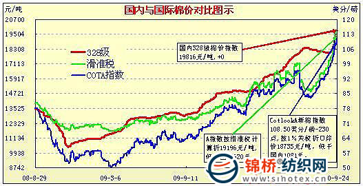 注:因中秋節(jié)休假三日,國內(nèi)棉價(jià)對(duì)比暫按節(jié)前21日數(shù)據(jù)對(duì)比。