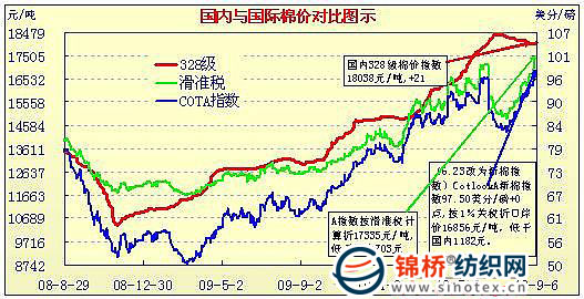 國(guó)內(nèi)外棉價(jià)對(duì)比圖表(7.30-9.6)