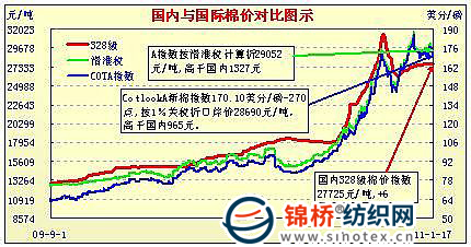 國內(nèi)外棉價(jià)對(duì)比圖表(11.1-11.30)