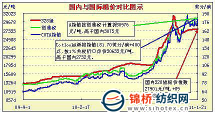 國內(nèi)外棉價對比圖表(11.1-11.30)