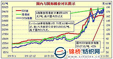 國內(nèi)外棉價對比圖表(12.20-1.11)
