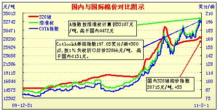 << 國(guó)內(nèi)外棉價(jià)對(duì)比圖表----A指數(shù)突破200美分(1.4-2.2)國(guó)內(nèi)外棉價(jià)對(duì)比圖表(1.4-1.31) >>