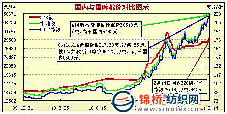 國內(nèi)外棉價(jià)對比圖表(1.31-2.14)