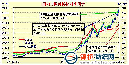 國(guó)內(nèi)外棉價(jià)對(duì)比圖表(1.31-2.22)
