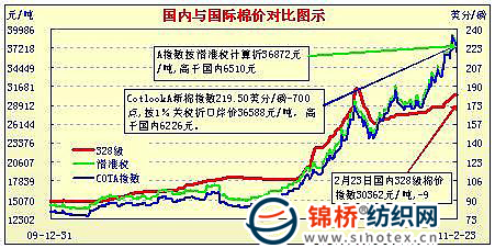國(guó)內(nèi)外棉價(jià)對(duì)比圖表(1.31-2.23)